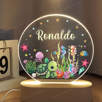 Custom Sea Turtle Night Light Personalized Name Acrylic Wooden Lamp Led Kid Bedroom Nursery Birthday Christmas Gift