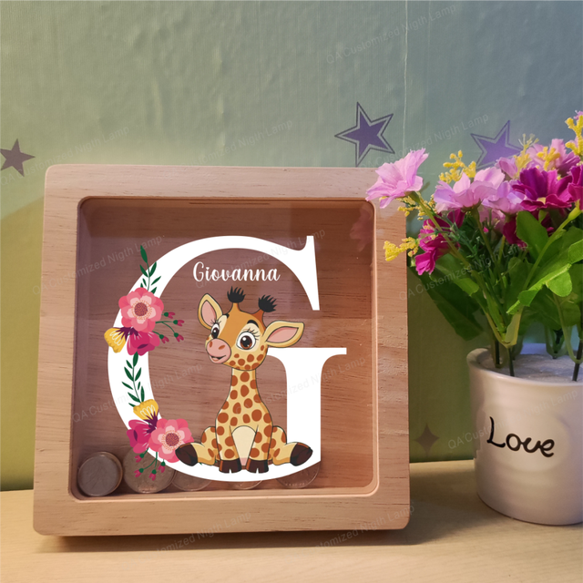 Kişiselleştirilmiş hayvan mektup müşteri adı para kutusu hediye çocuklar için para banka çerçeve mevcut noel